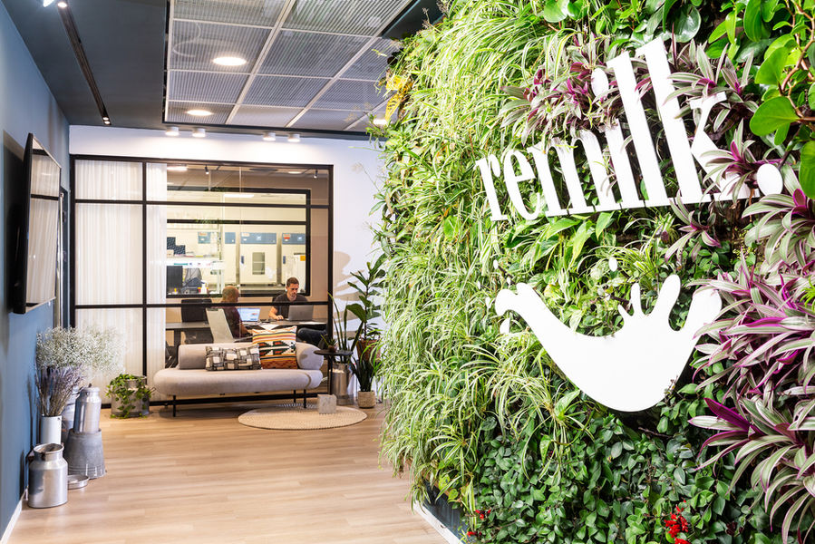 Since the main goal of the company is to create a dairy product that is not only green but also tastes really good a huge emphasis was made on the kitchen and dining area, alongside with a view through the meeting rooms glass to the innovative labs.